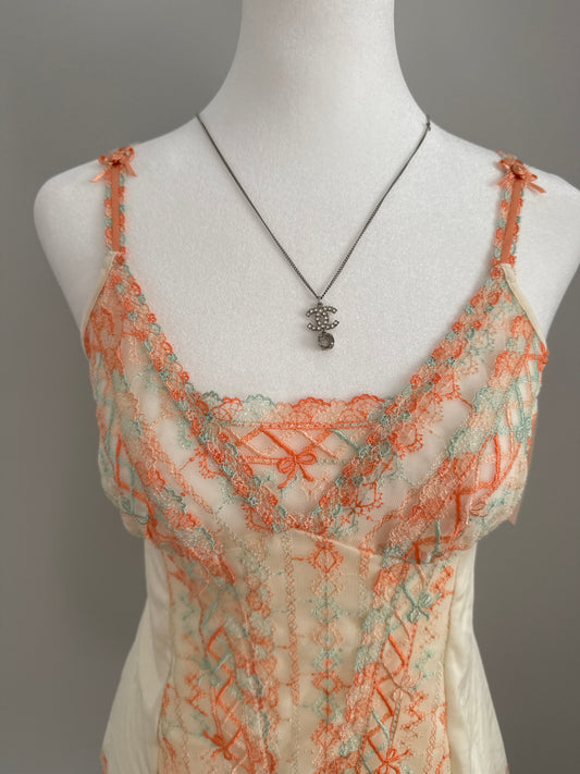 sweet eblin peach lace floral slip dress