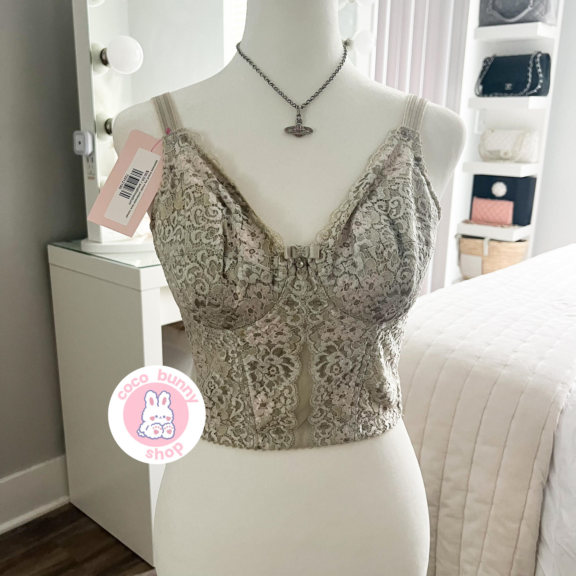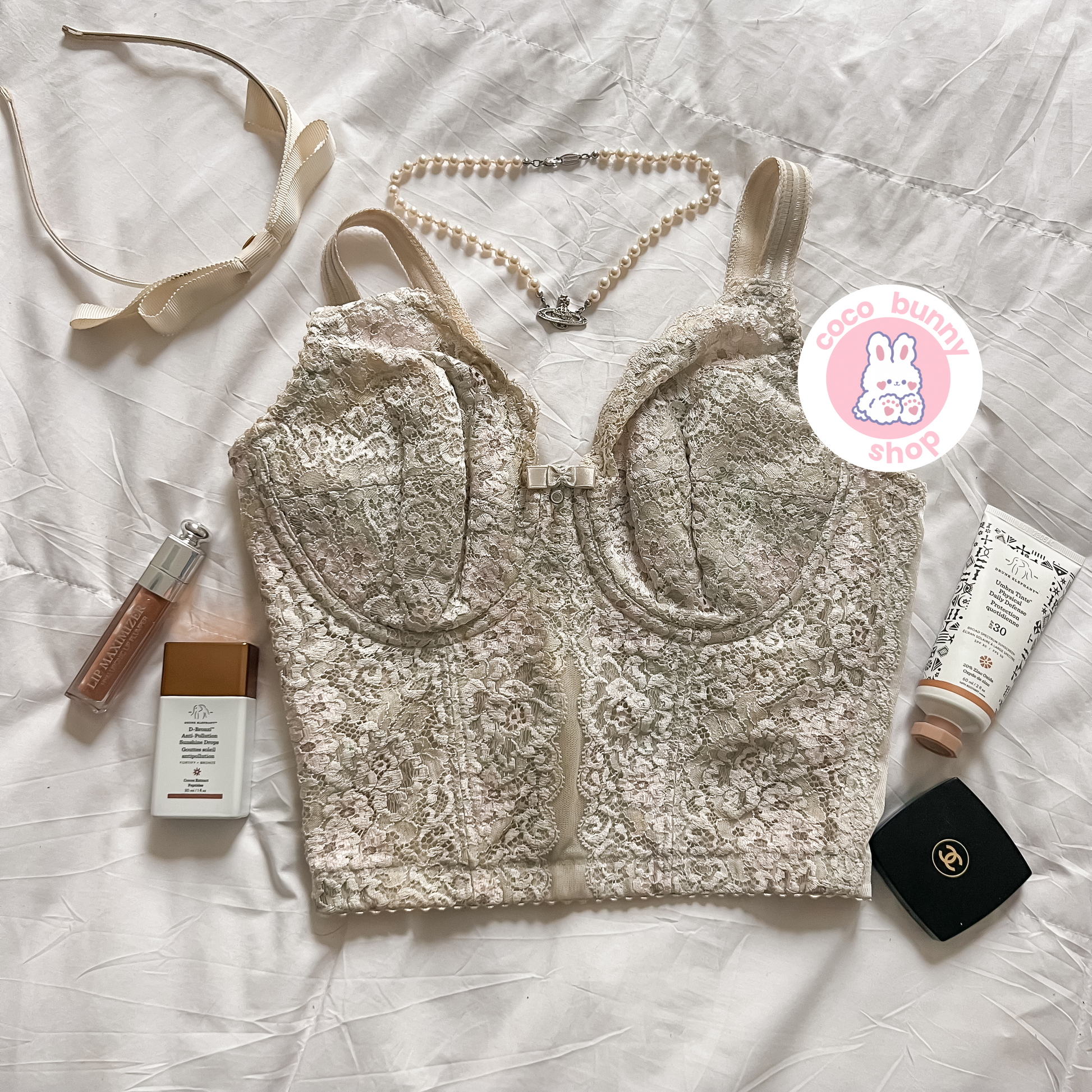 reminded by sleepy sundays and slow living, this corset breathes elegance and romance. this bustier top features lace embroidery, under wire fit, and a mini bow and gem statement
