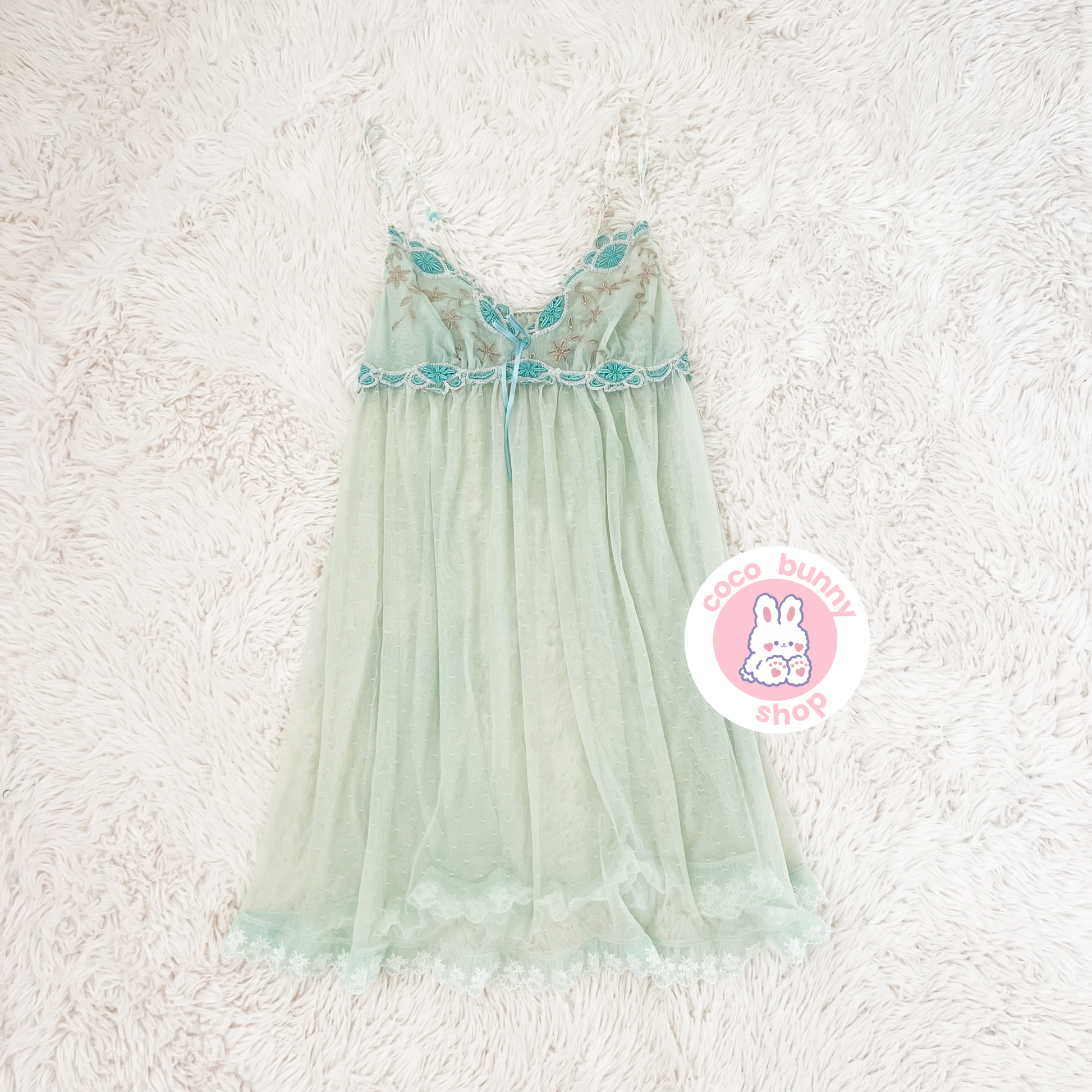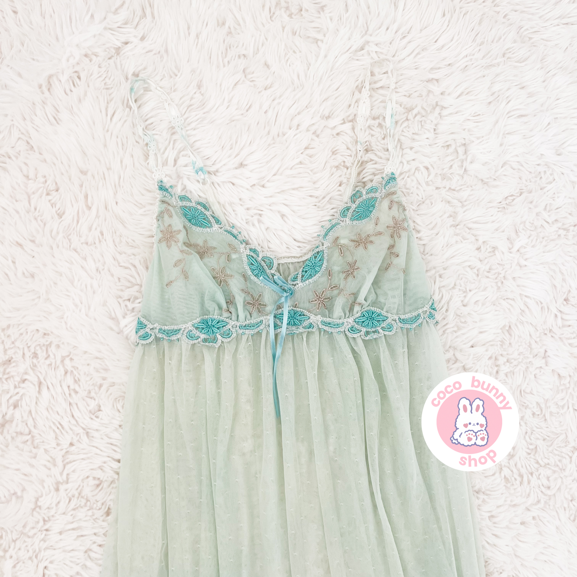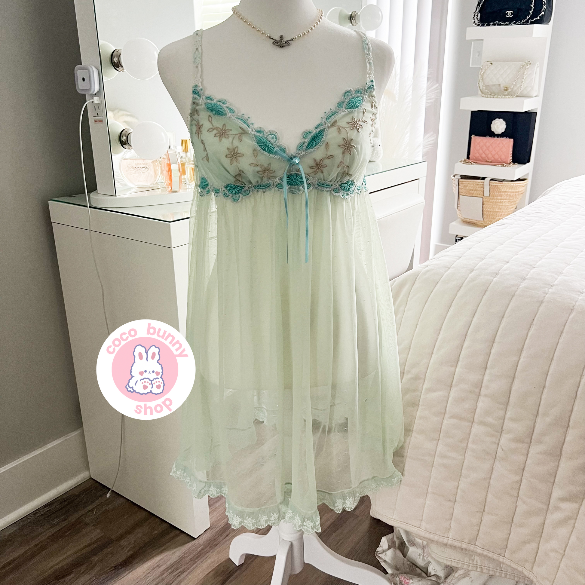 reminiscent of parisian markets, this whimsy babydoll is sure to turn heads infused with its vintage appeal. this lingerie babydoll features sheer mesh fabric, swiss dots, ruffles at the skirt hem, ribbon bow accent, and mini floral embroidery