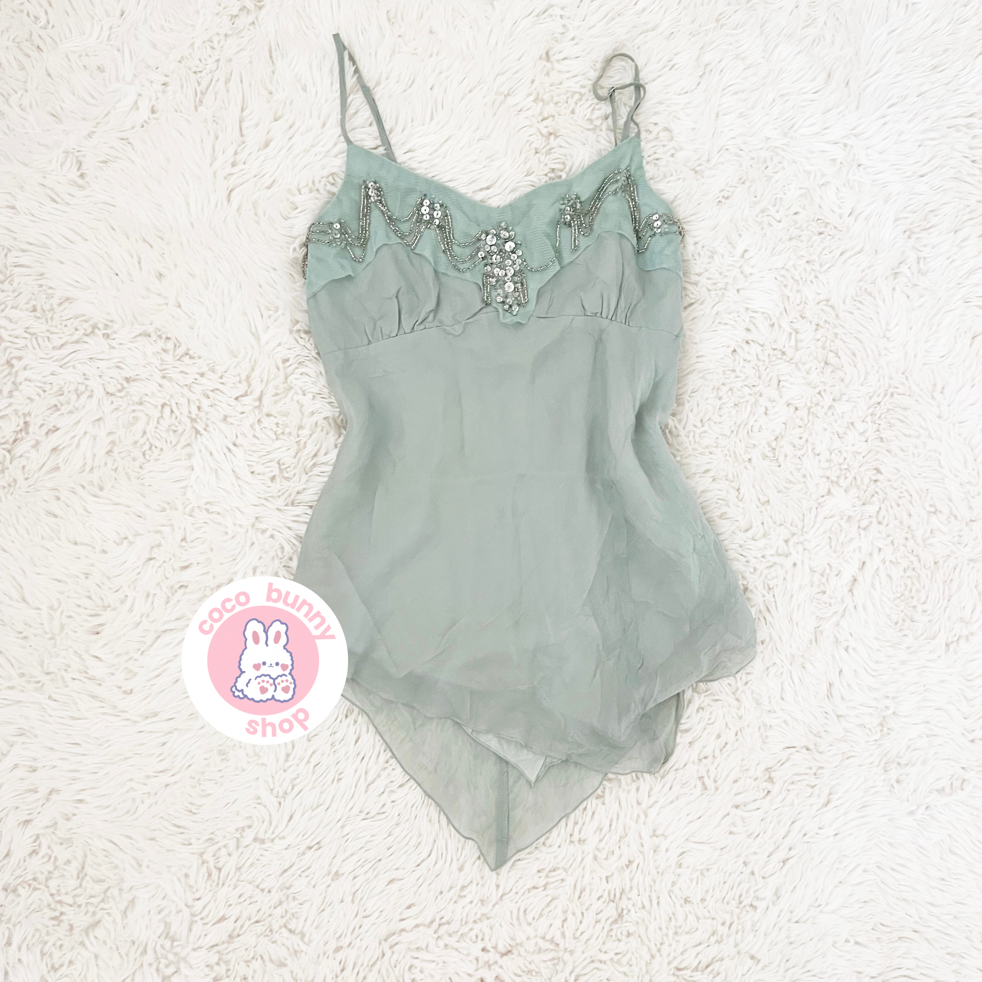 introducing the jellyfish sequin top—a perfectly flowy, ultra-chic silhouette that’ll transport you to a y2k era. this jellyfish top features sequin beading along the neckline; the bust and bodice is ruched, while the asymmetrical hem adds a dramatic finish