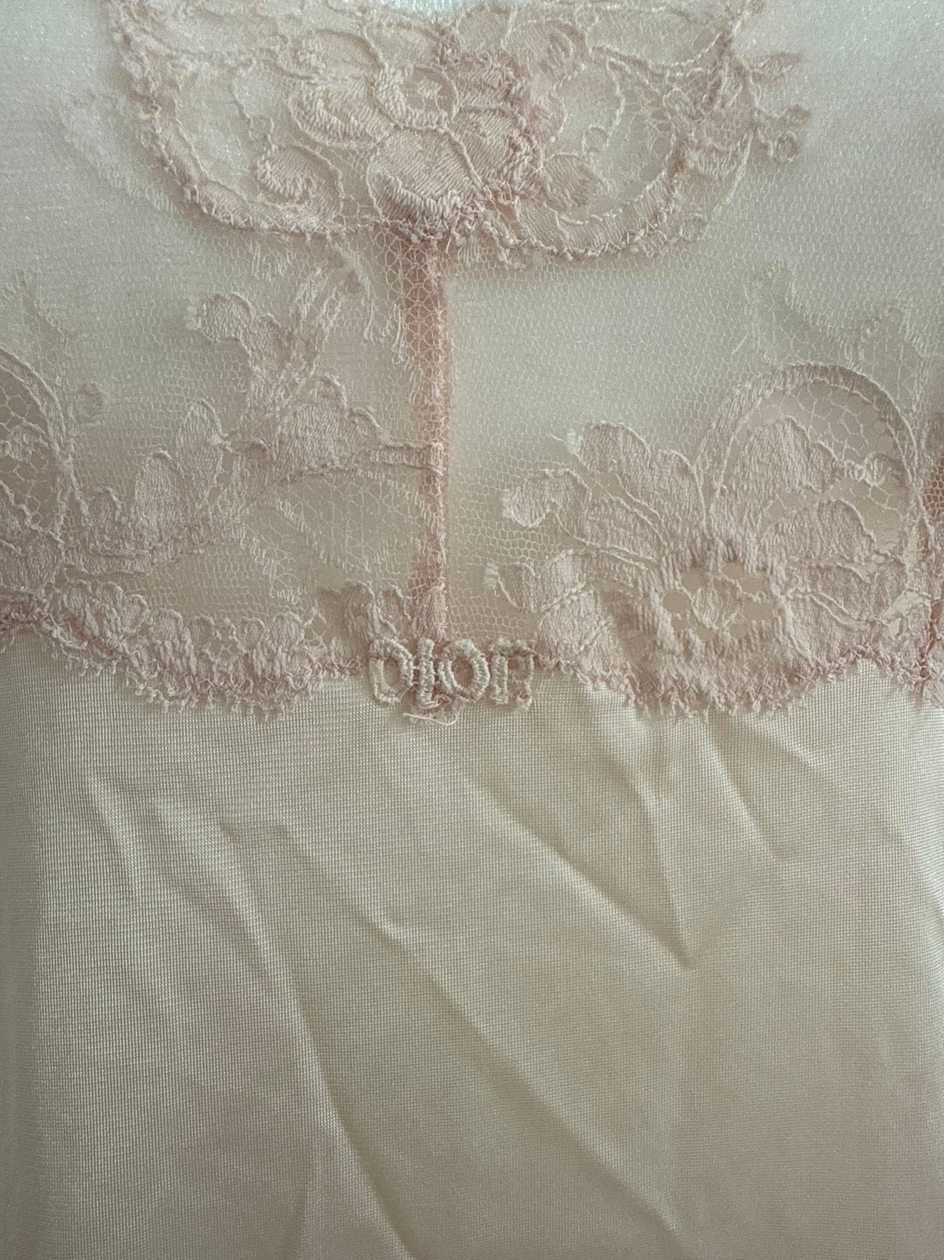 soft and elegant, this ivory slip features delicate blush lace along the bodice and hem, creating a romantic and ethereal silhouette. the sheer lace details add a touch of vintage charm, while the flowing fit drapes effortlessly for a timeless look. perfect for daydreaming in delicate fabrics.