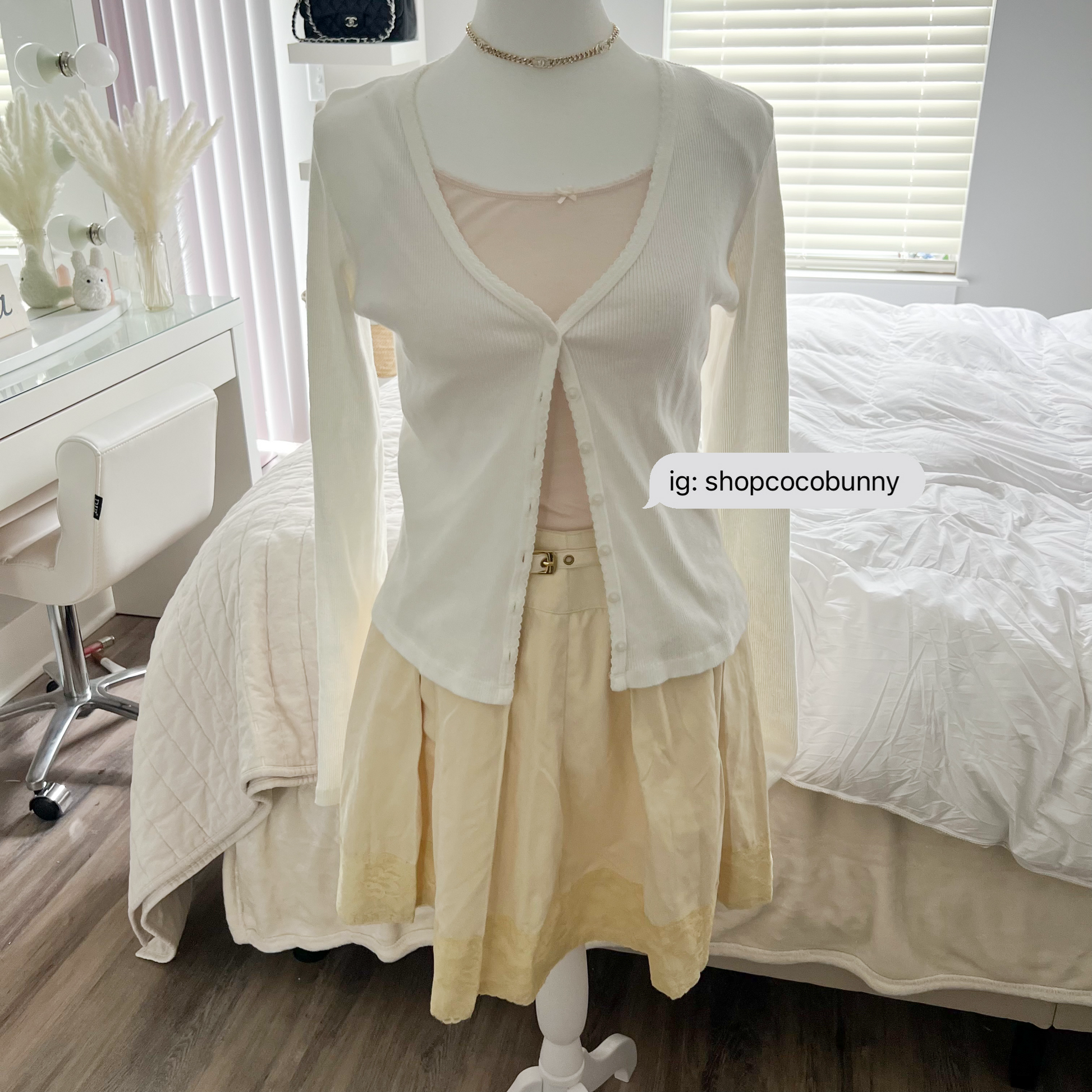 be the cutest with this skirt that features a thin statement belt, pocket button detail, and a subtly laced hem making for a perfect date night