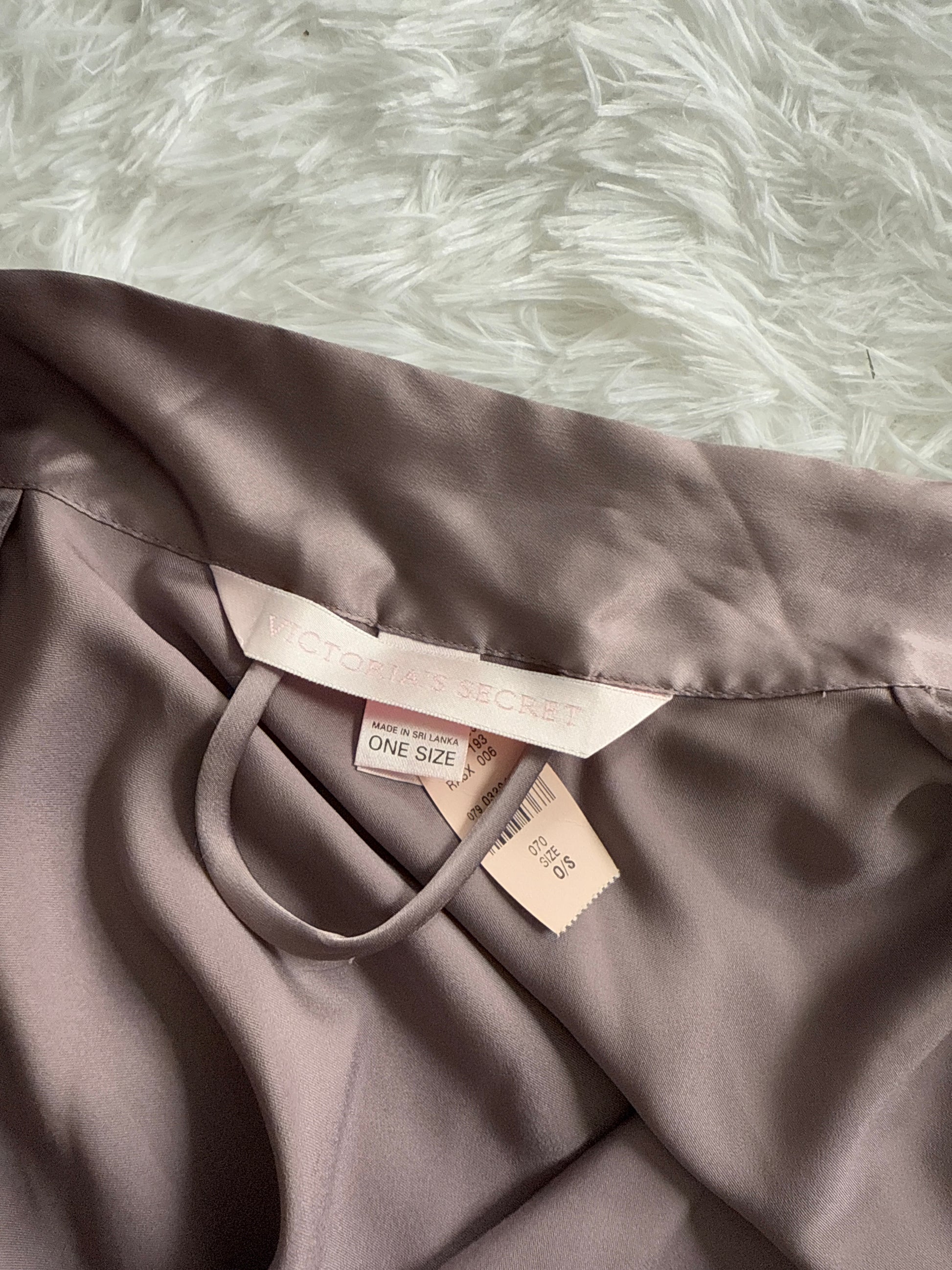 The perfect touch of luxury. This vintage satin robe in a muted mauve hue features a relaxed, loose fit with a matching waist tie for an effortlessly chic silhouette. Ideal for slow mornings spent sipping lavender tea in bed, flipping through a well-loved novel, or winding down after a warm bath with a candlelit glow.