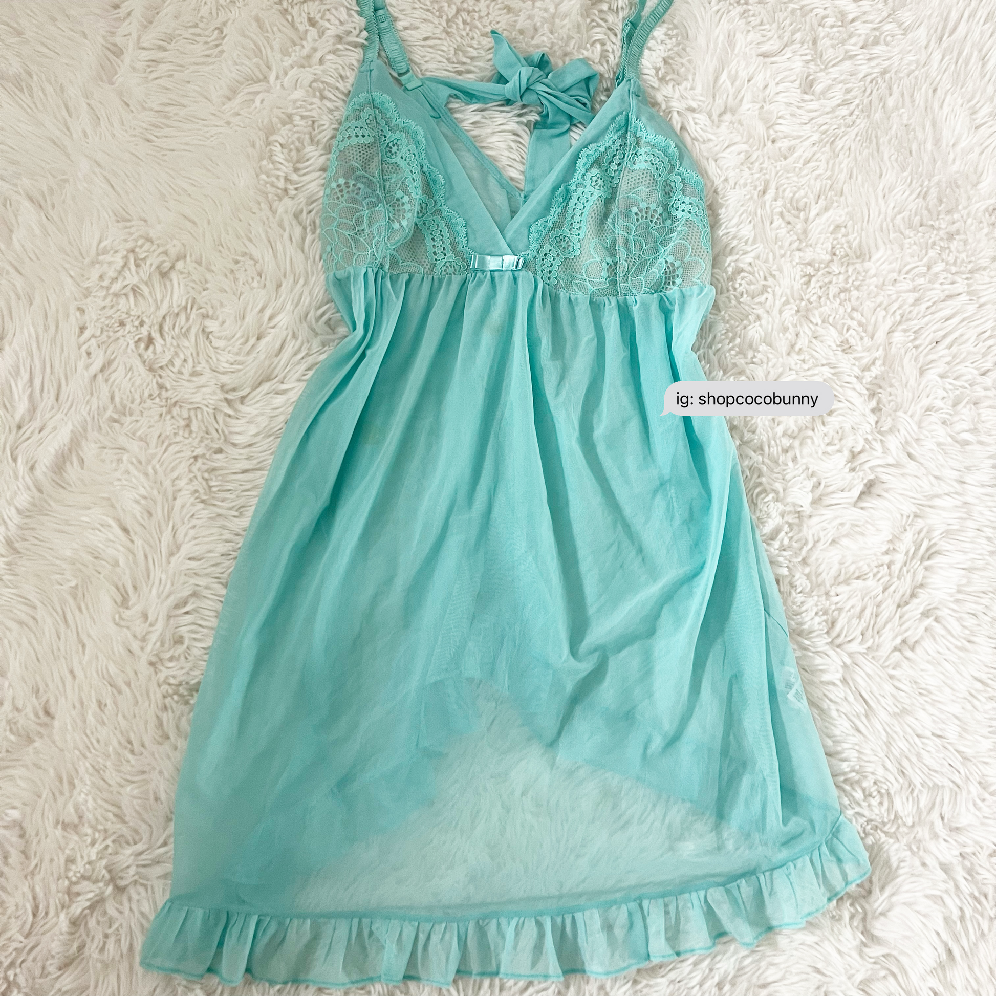 designed for the ultimate summer siren or mermaid, this babydoll style slip dress is an ultra-glamorous, romantic piece. crafted in a turquoise ocean color, it features bow and ruffle accents, adjustable straps and a v neckline with a bow tie closure