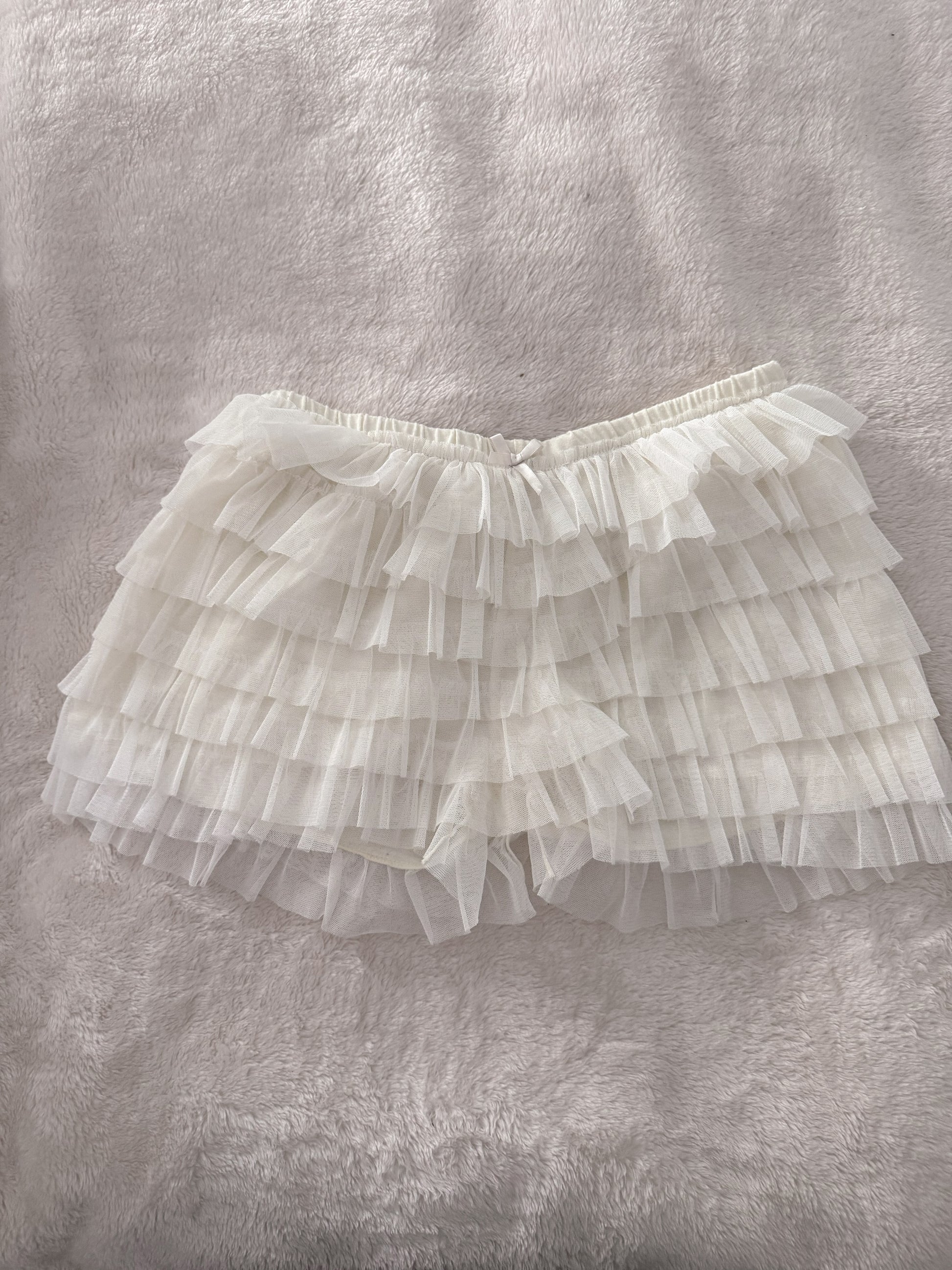 pearl night cream martini ruffle shorts