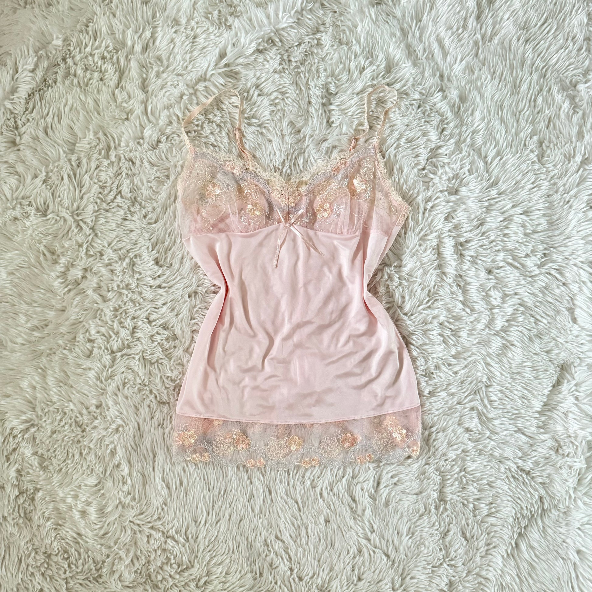 pink delicate floral embroidery camisole