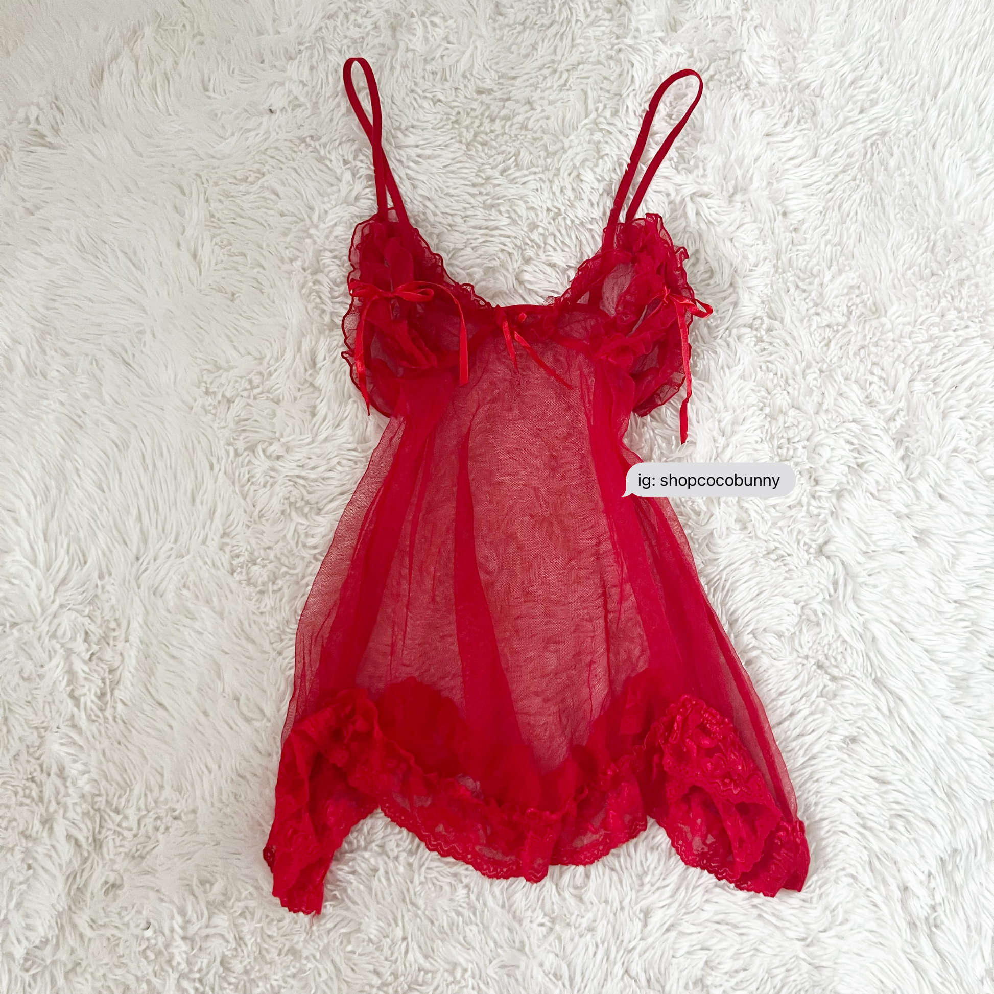 spicy red ribbon sheer slip dress