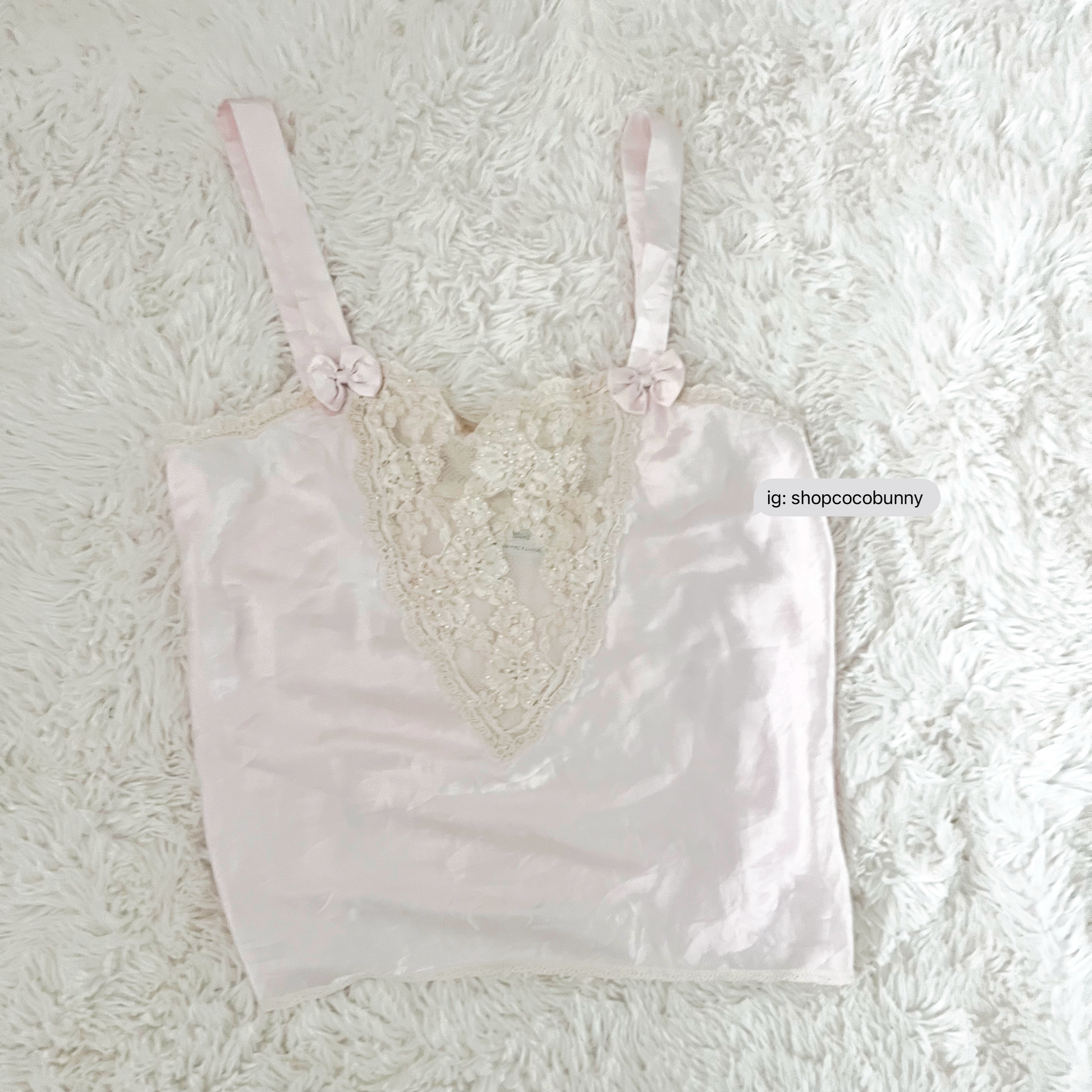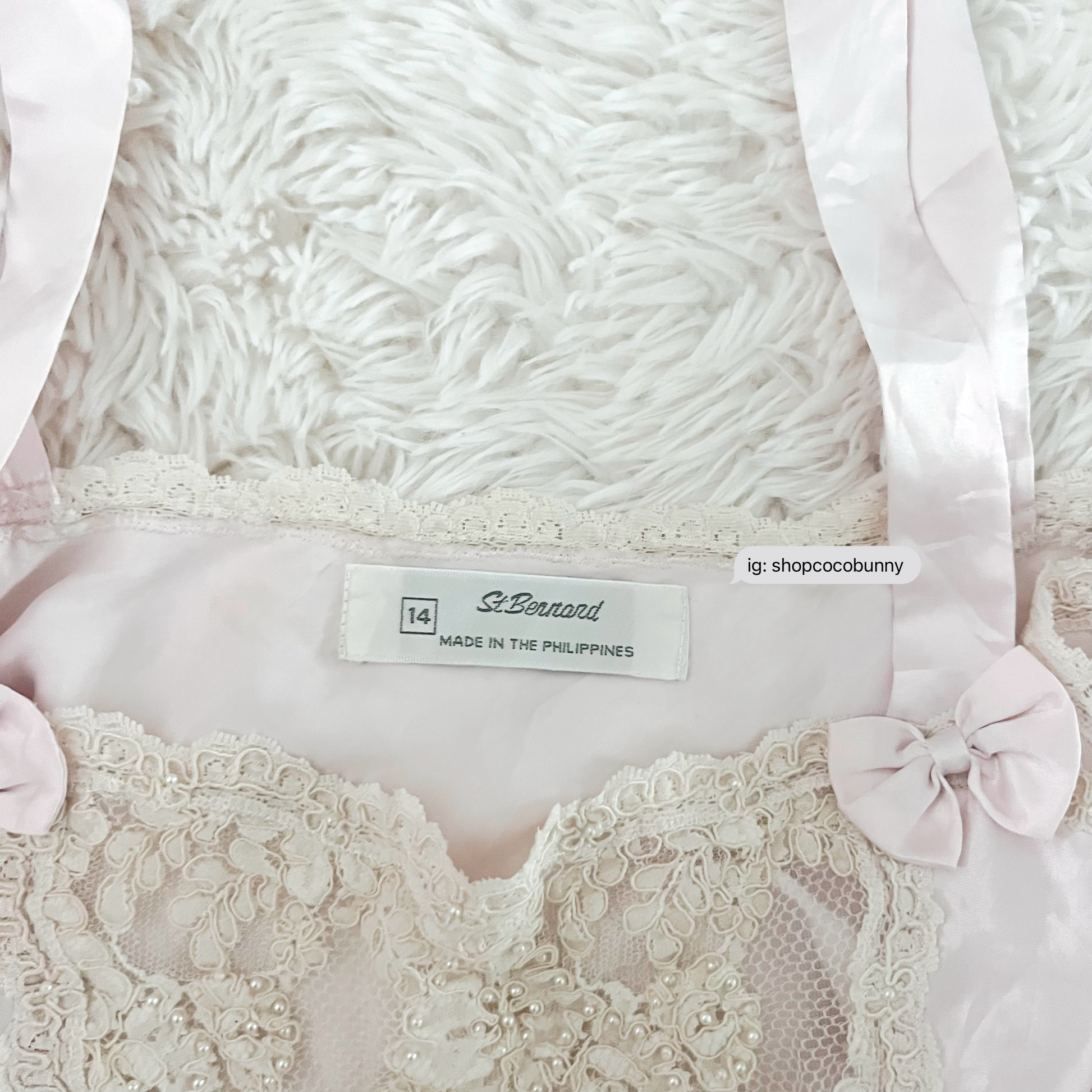 st. bernard light pink satin pearl embossed sheer lace camisole