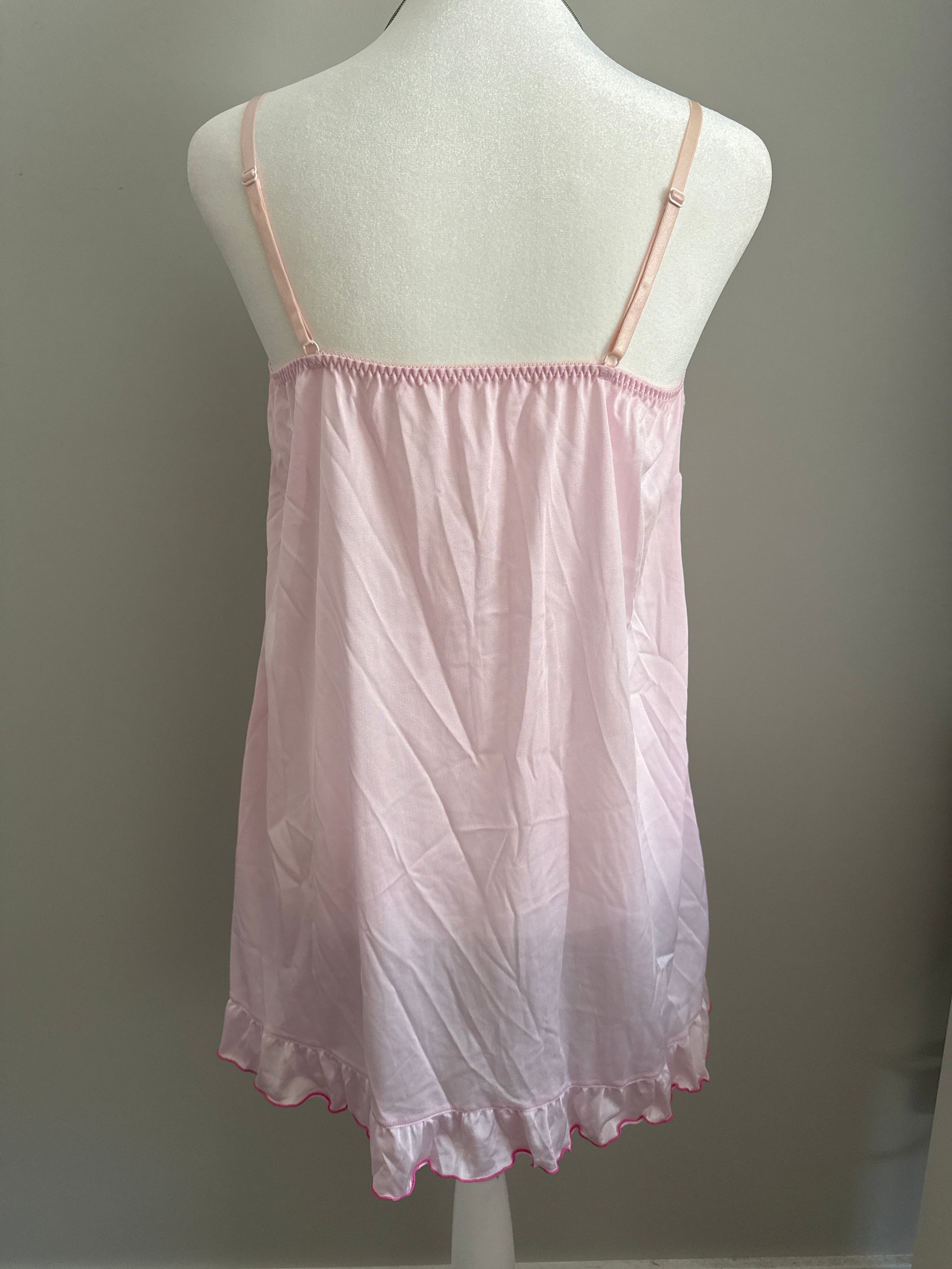 this whimsical slip dress in a cool pink hue features a relaxed fit, a fluttery ruffle hem, intricate flower embroidery, adjustable straps, and weaved pink ribbon accents, it feels like wearing a fairytale.