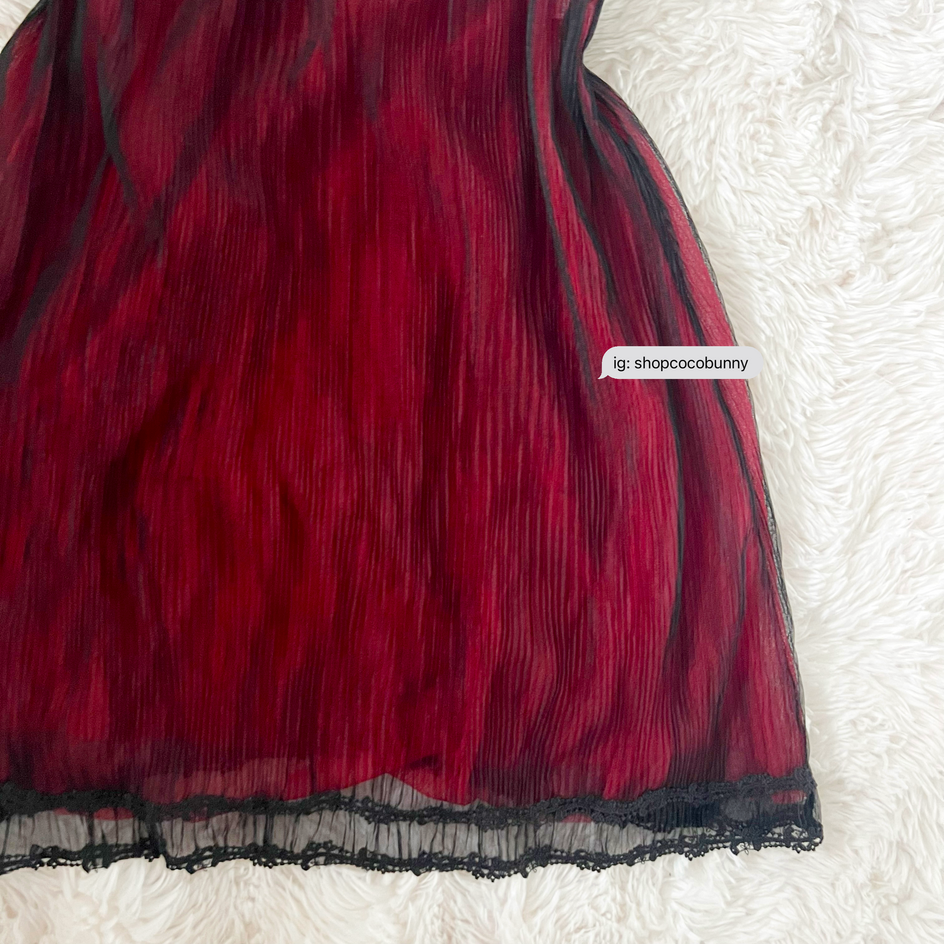 crafted in beautiful semi sheer with an allover red print with black pleats, this short flowing hem dress is perfrcf for all the goth and dark girlies and showcases your silhouette effortlessly